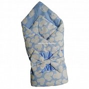 Одеяло выполнено из ткани с двумя разными рисунками, размер 100*100 см. Одеяло можно использовать для укутывания новорождённого, воспользовавшись для закрепления бантом на резинке, который идёт в комплекте.