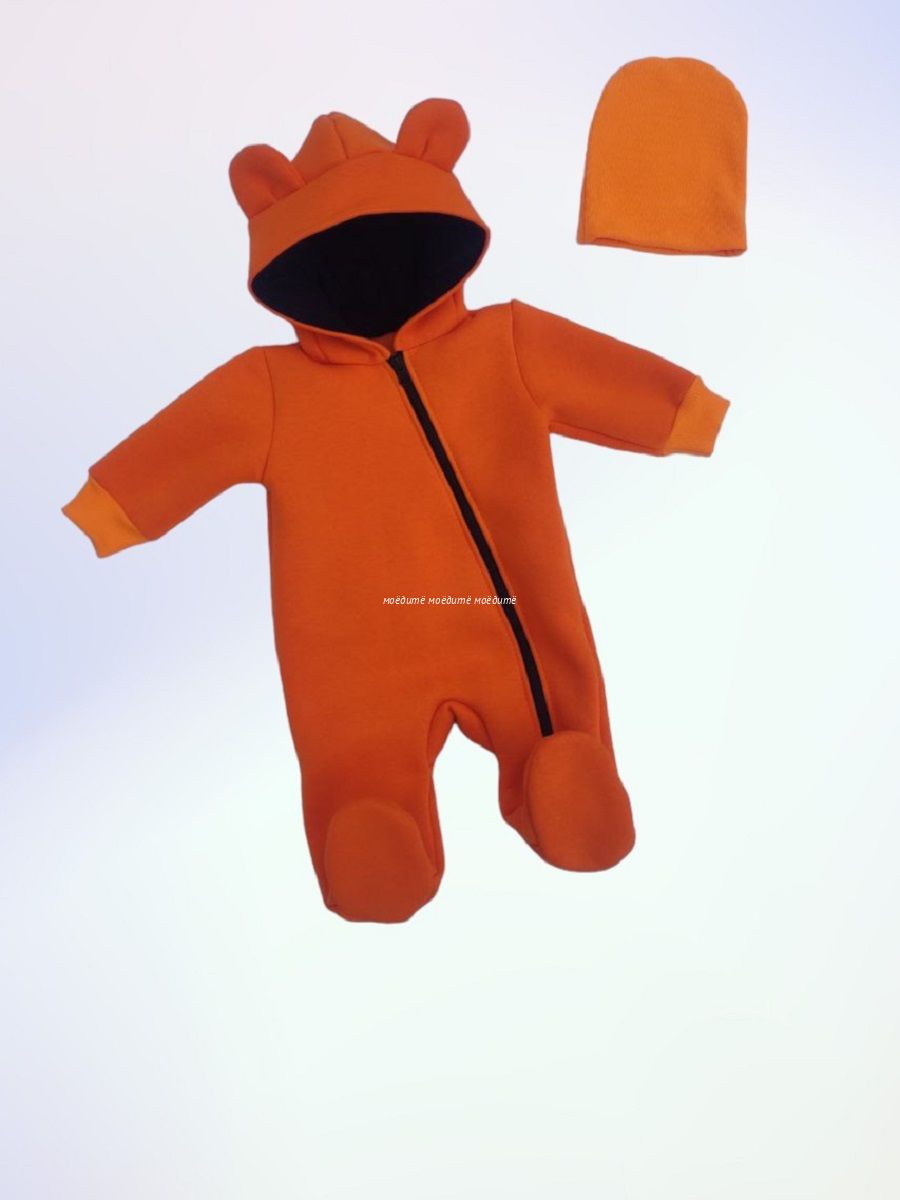 "МоёДитё" комбинезон выполнен из футера с начёсом. Комбинезон с капюшоном на подкладке и декорирован сверху ушками, с закрытыми ножками, рукава на манжетах, спереди косая молния до конца одной ножки. Шапочка из кашкорсе можно одевать как с отворотом, так и без. Очень хорошо тянется.